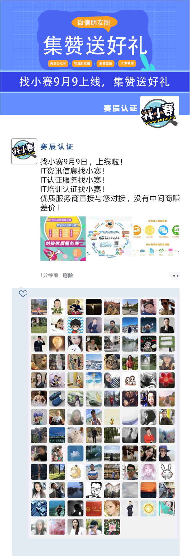分享找小賽指定活動圖片到朋友圈集贊并附上相應(yīng)文字: