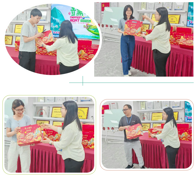 5月28日,工會主席親自將粽子禮盒送到員工手中,每一份粽子的分發(fā),都是工會委員會對員工辛勤付出的認(rèn)可與感激,也是對公司大家庭溫暖氛圍的進一步營造。這份來自公司的關(guān)懷,讓員工們在忙碌的工作中感受到了家的溫暖。收到粽子的員工們臉上洋溢著幸福的笑容,他們紛紛表示,這份禮物將不僅是一份味蕾的享受,更是一份心靈的慰藉。有的員工恨不得立即與同事分享這份美味,有的則小心翼翼地保存起來,打算與家人共度晚餐時共享這份甜蜜。